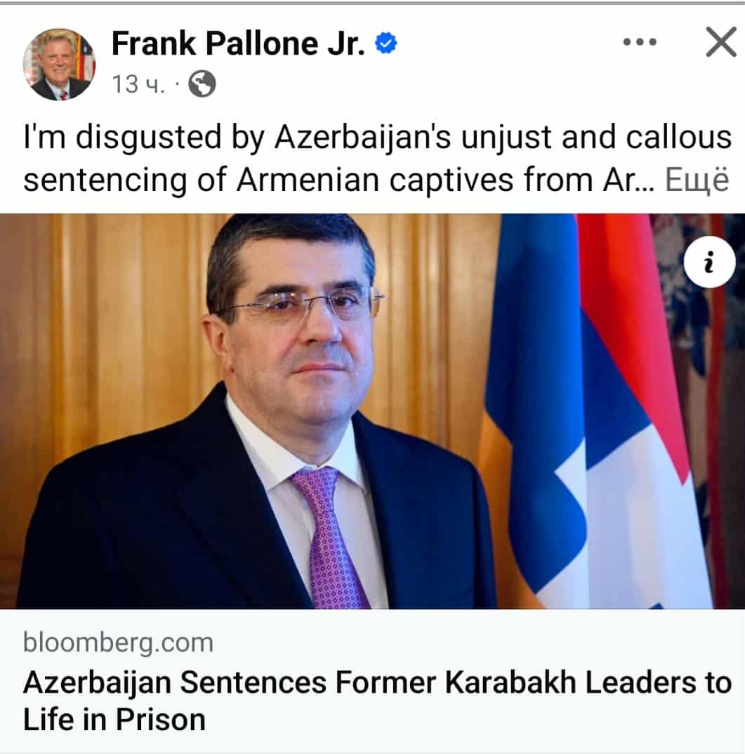 Կարդալ ավելինԱՄՆ կոնգրեսական Փրանկ Փալոնը ֆեսյբուքյան իր էջում անդրադարձել է Արցախի ռազմական և քաղաքական ղեկավարների շինծու վճռին գրելով․ «Նողկալի է Ադրբեջանի ...
